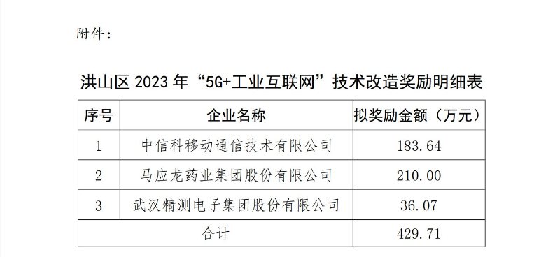【公示】關于洪山區(qū)2023年“5G+工業(yè)互聯(lián)網”試點示范項目獎勵的公示